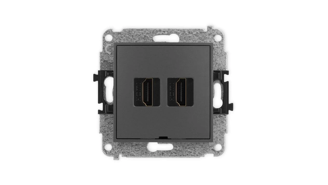 ICON Mechanizm gniazda podwójnego HDMI 2.0, bez pola opisowego grafitowy mat 28IHDMIBO-4