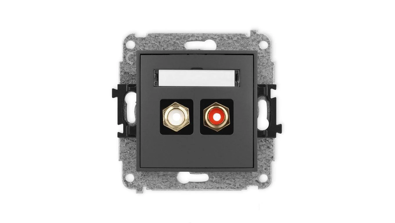 ICON Mechanizm gniazda podwójnego RCA (typu cinch - biały i czerwony, pozłacany) grafitowy mat 28IGRCA-2