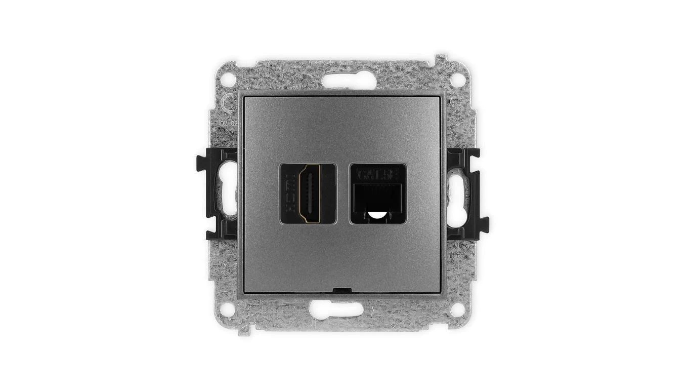 ICON Mechanizm gniazda pojedynczego HDMI 2.0 + gniazda komp. poj. 1xRJ45, kat. 5e, 8-styk, bez pola opisowego grafitowy 11IGHKBO