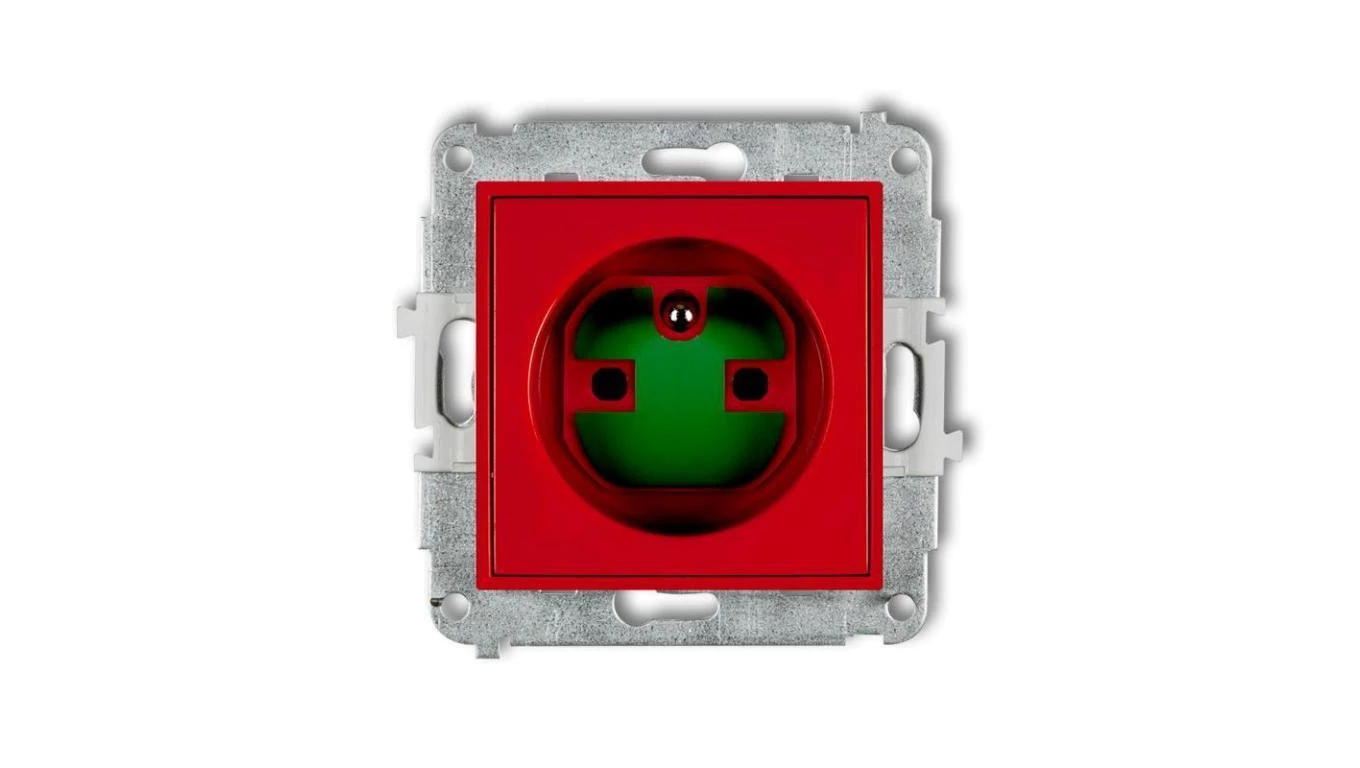 ICON Mechanizm gniazda pojedynczego z uziemieniem 2P+Z DATA z kluczem czerwony IGZK