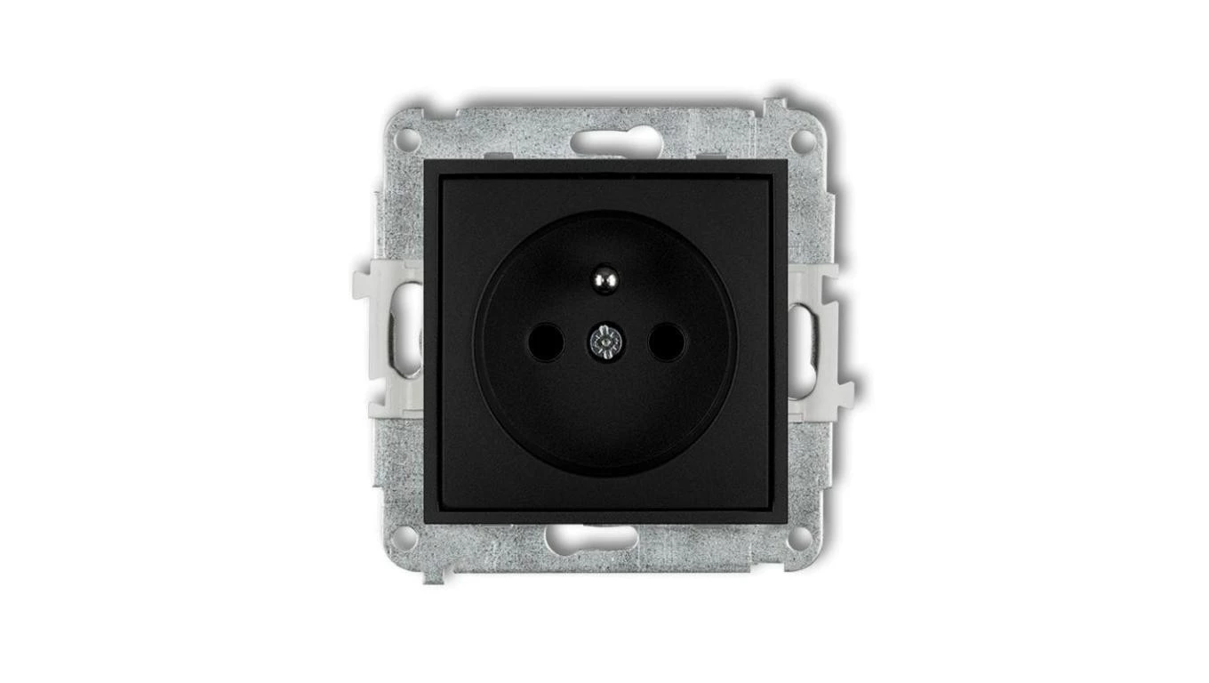 ICON Mechanizm gniazda pojedynczego z uziemieniem 2P+Z (przesłony torów prądowych) czarny mat 12IGP-1zp