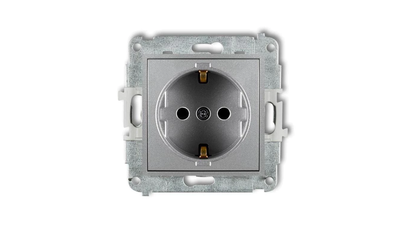 ICON Mechanizm gniazda pojedynczego z uziemieniem SCHUKO 2P+Z (przesłony torów prądowych) srebrny metalik 7IGP-1sp