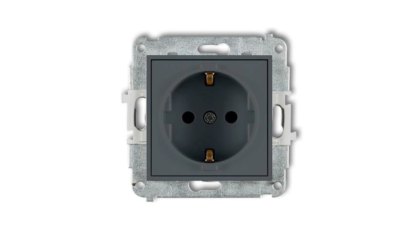 ICON Mechanizm gniazda pojedynczego z uziemieniem SCHUKO 2P+Z (przesłony torów prądowych) grafitowy mat 28IGP-1sp