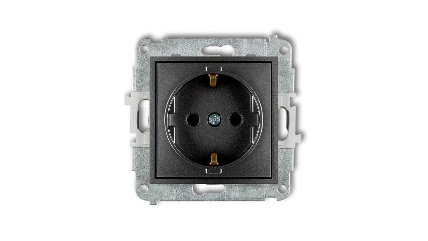 ICON Mechanizm gniazda pojedynczego z uziemieniem SCHUKO 2P+Z (przesłony torów prądowych) grafitowy 11IGP-1sp