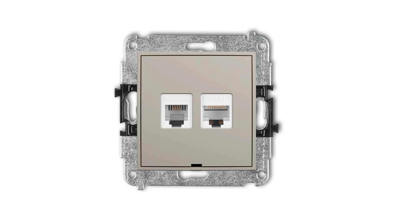ICON Mechanizm gniazda telefonicznego 1xRJ11 + komputerowego 1xRJ45, kat. 5e 8-stykowy, beznarzędziowe, bez opisu taupe 60IGTKBO
