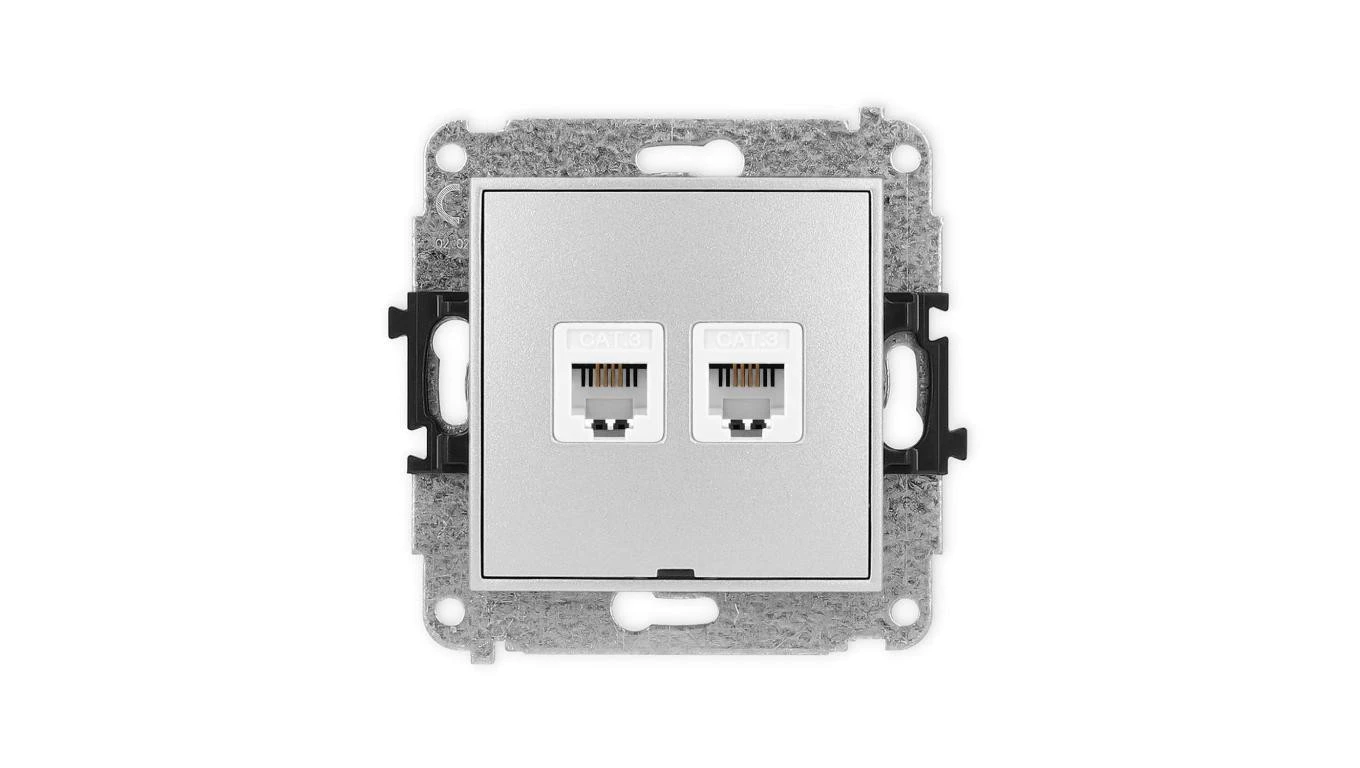 ICON Mechanizm gniazda telefonicznego podwójnego 2xRJ11, 4-stykowy, beznarzędziowe, bez pola opisowego srebrny metalik 7IGTBO-2