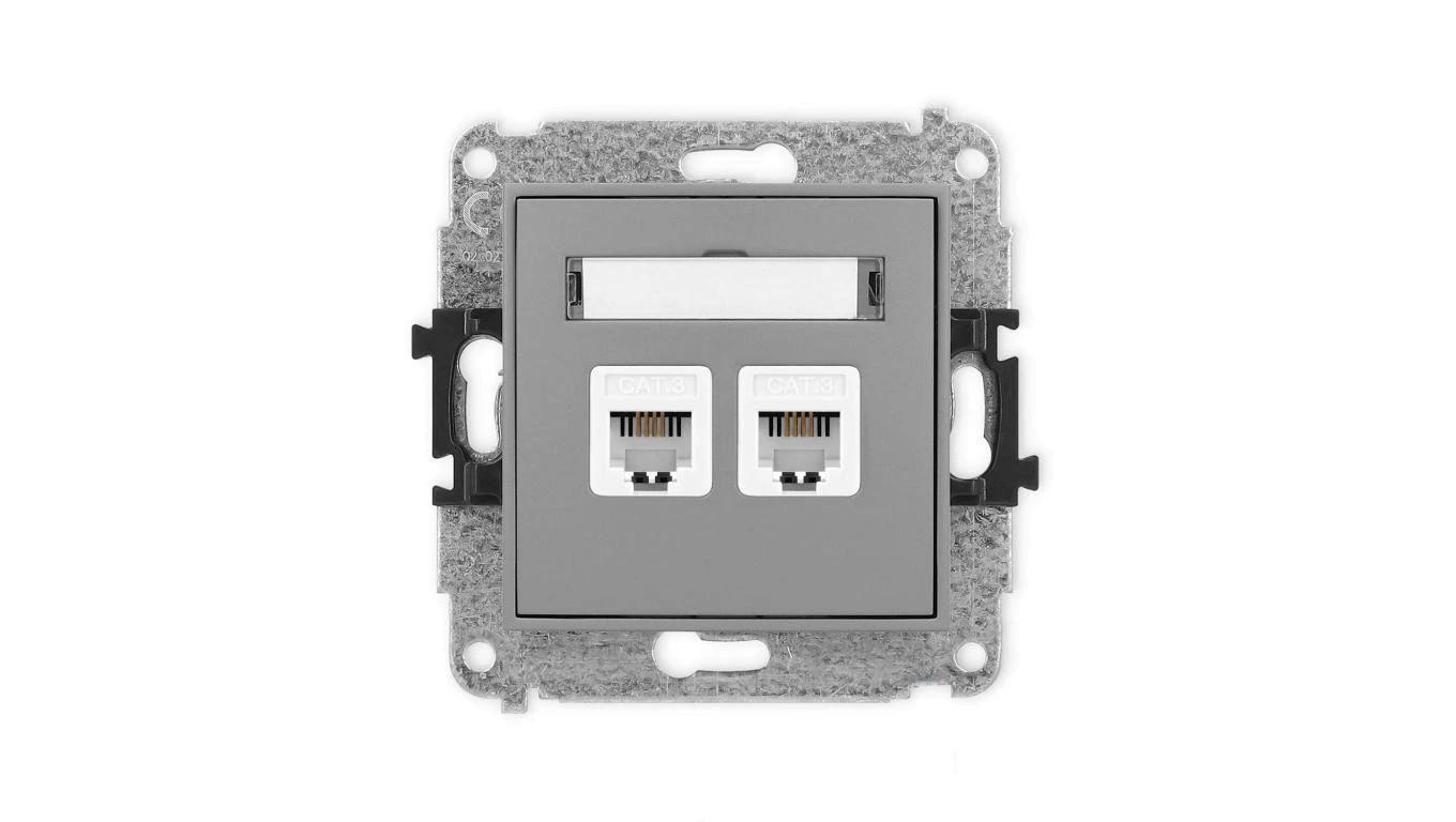 ICON Mechanizm gniazda telefonicznego podwójnego 2xRJ11, 4-stykowy, beznarzędziowe szary mat 27IGT-2