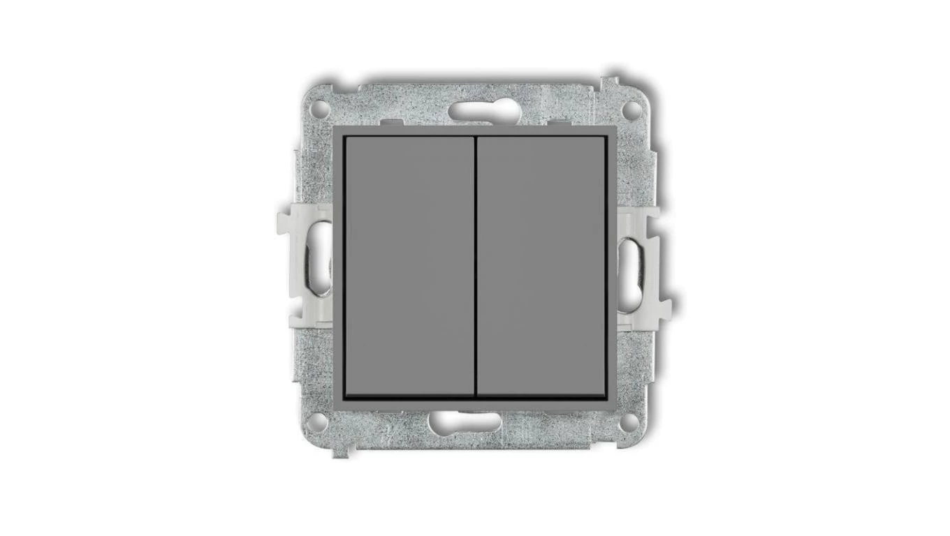 ICON Mechanizm łącznika jednobiegunowego ze schodowym (dwa klawisze bez piktogramów, wspólne zasilanie) szary mat 27IWP-10.11