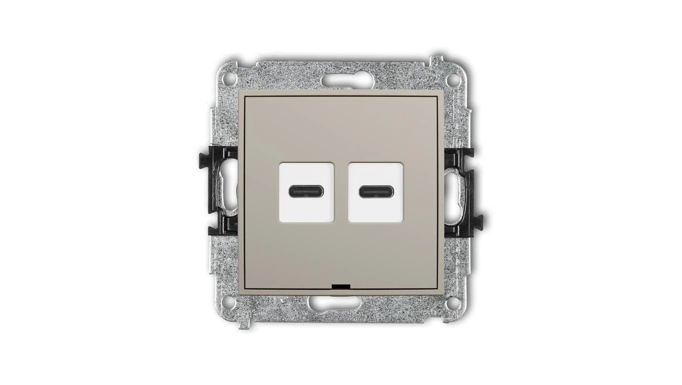 ICON Mechanizm ładowarki USB podwójnej 2xUSB C, 20W max., bez pola opisowego taupe 60ICUSBBO-7