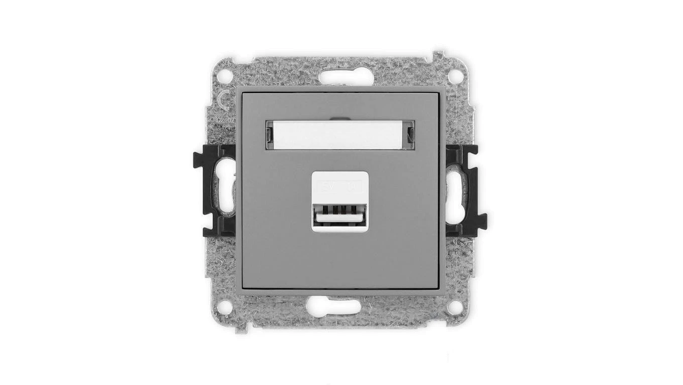 ICON Mechanizm ładowarki USB pojedynczej, 5V, 1A szary mat 27ICUSB-1