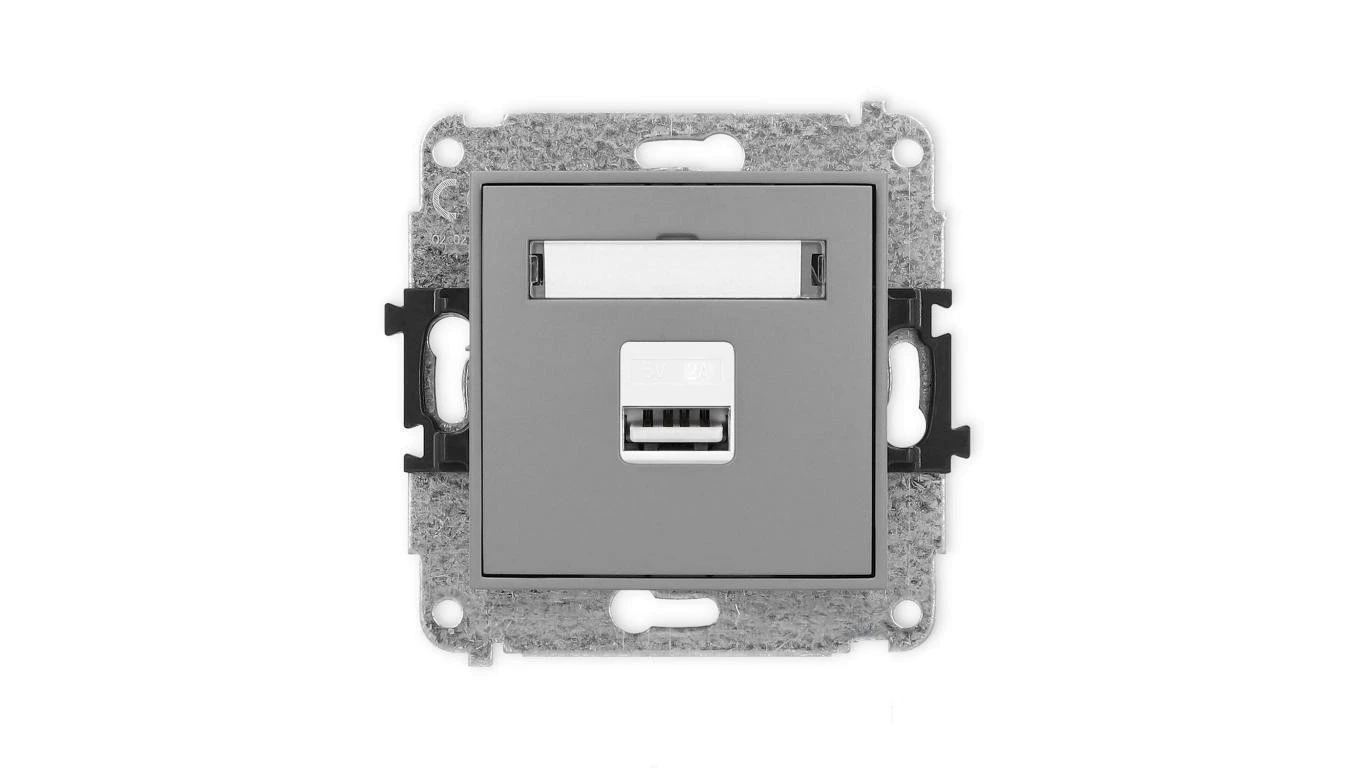 ICON Mechanizm ładowarki USB pojedynczej, 5V, 2A szary mat 27ICUSB-3