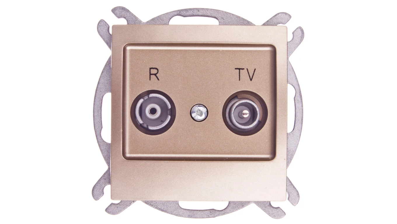 IMPRESJA Gniazdo antenowe RTV przelotowe 14dB złoty metalik GPA-14YP/m/28