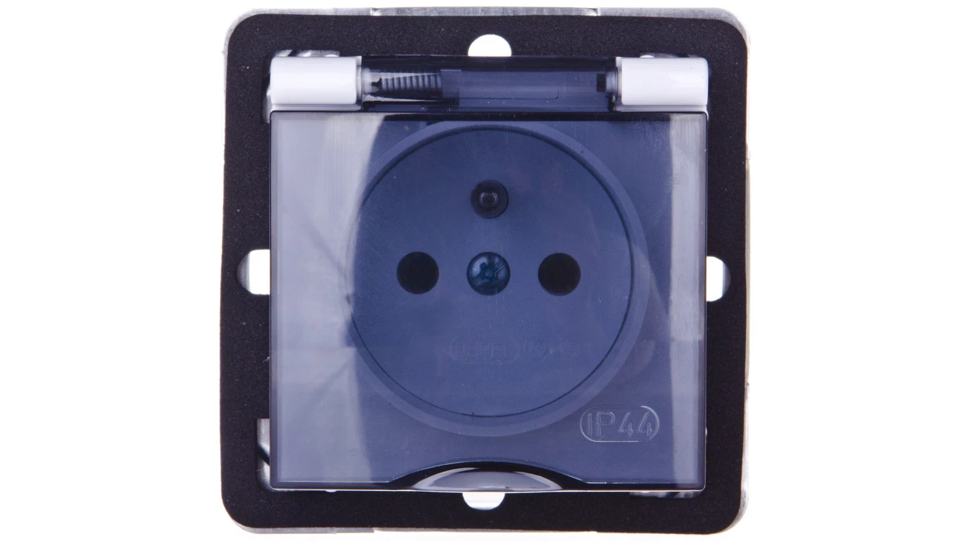 IMPRESJA Gniazdo bryzgoszczelne z/u IP44 klapka przezroczysta białe GPH-1YZ/m/00/d