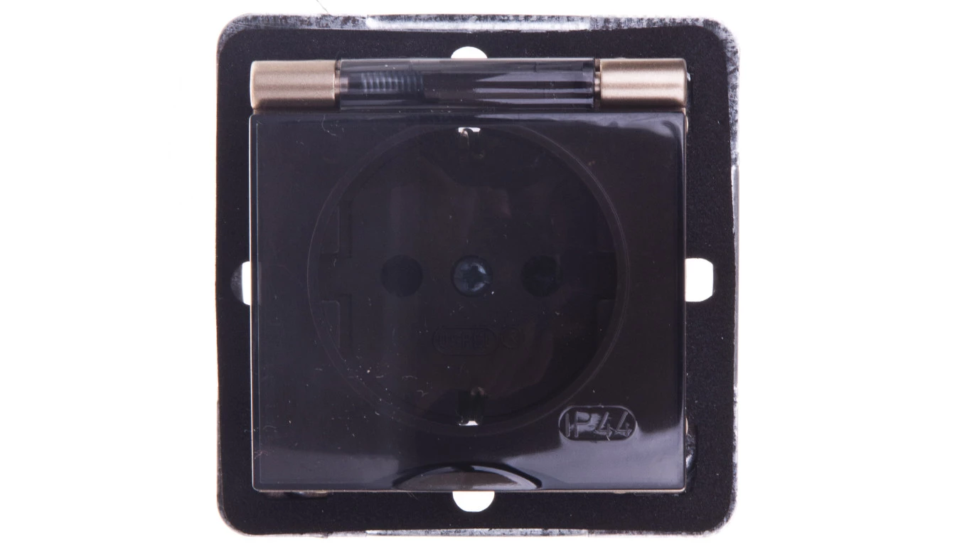 IMPRESJA Gniazdo bryzgoszczelne z/u Schuko IP44 klapka przezroczysta złoty metalik GPH-1YS/m/28/d
