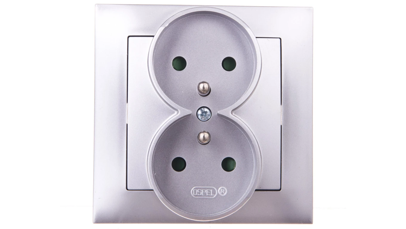 IMPRESJA Gniazdo podwójne z/u z przesłonami srebrne GP-2YZP/18