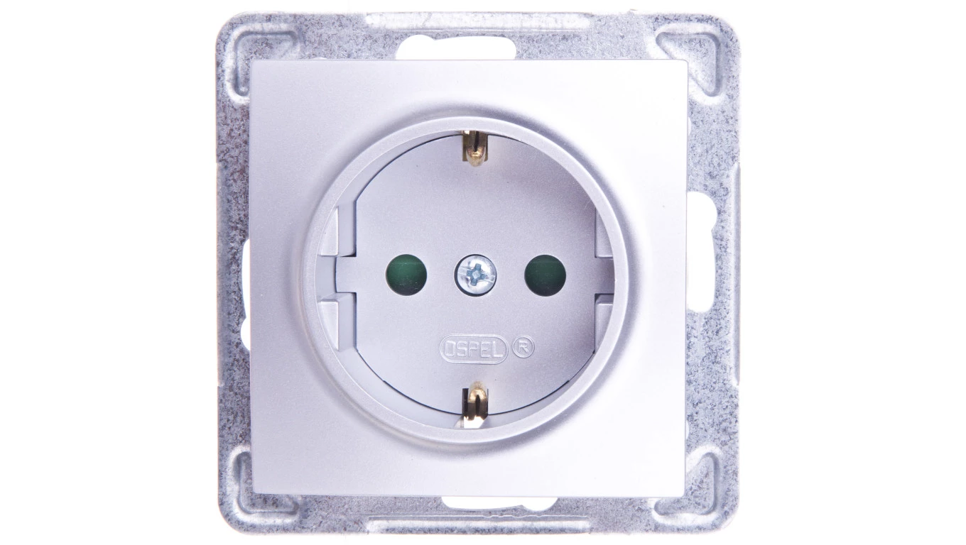 IMPRESJA Gniazdo pojedyncze z/u Schuko z przesłonami srebrne GP-1YSP/m/18