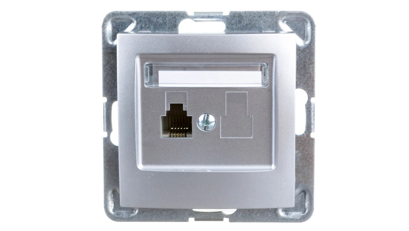 IMPRESJA Gniazdo telefoniczne pojedyncze RJ11 srebrne GPT-1Y/m/18