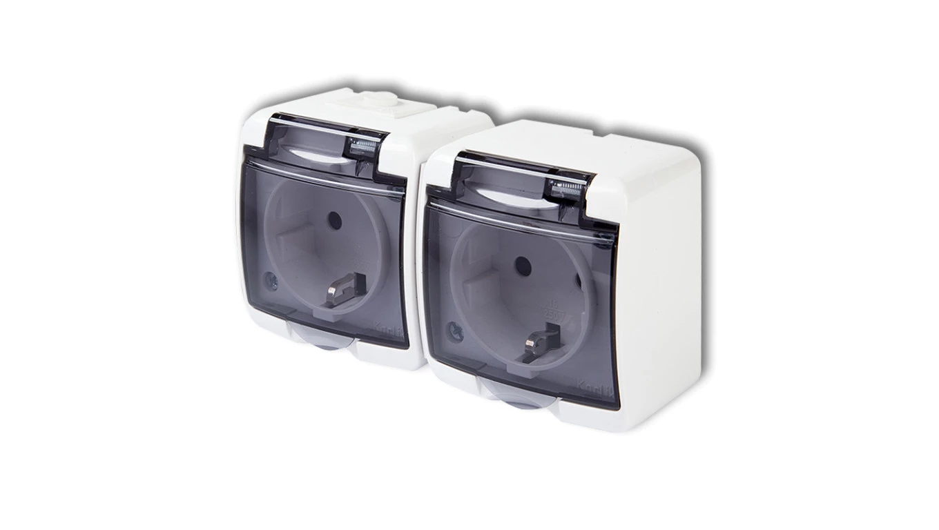 JUNIOR Gniazdo podwójne z/u SCHUKO (klapka dymna) biały GHE-2sd
