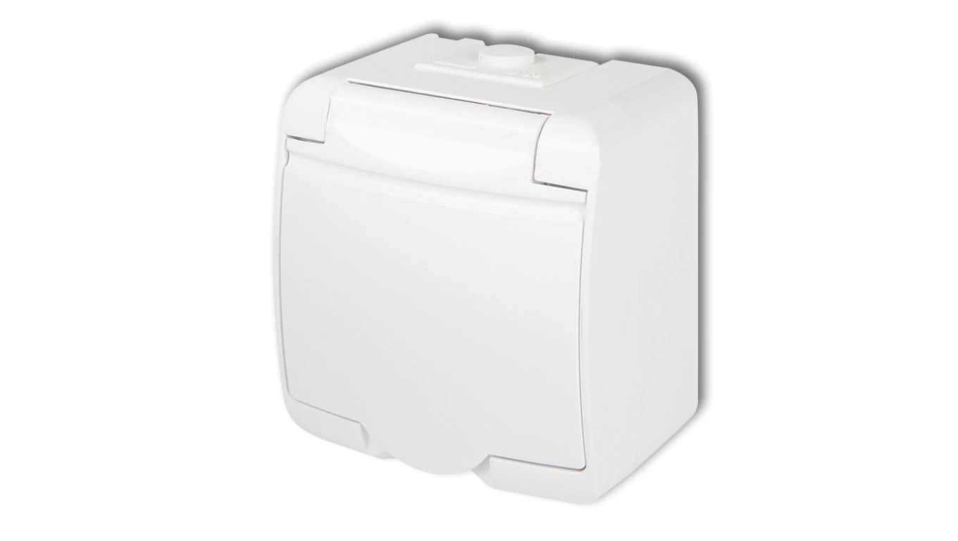 JUNIOR Gniazdo pojedyncze z/u (klapka biała) biały IP54 GHE-1