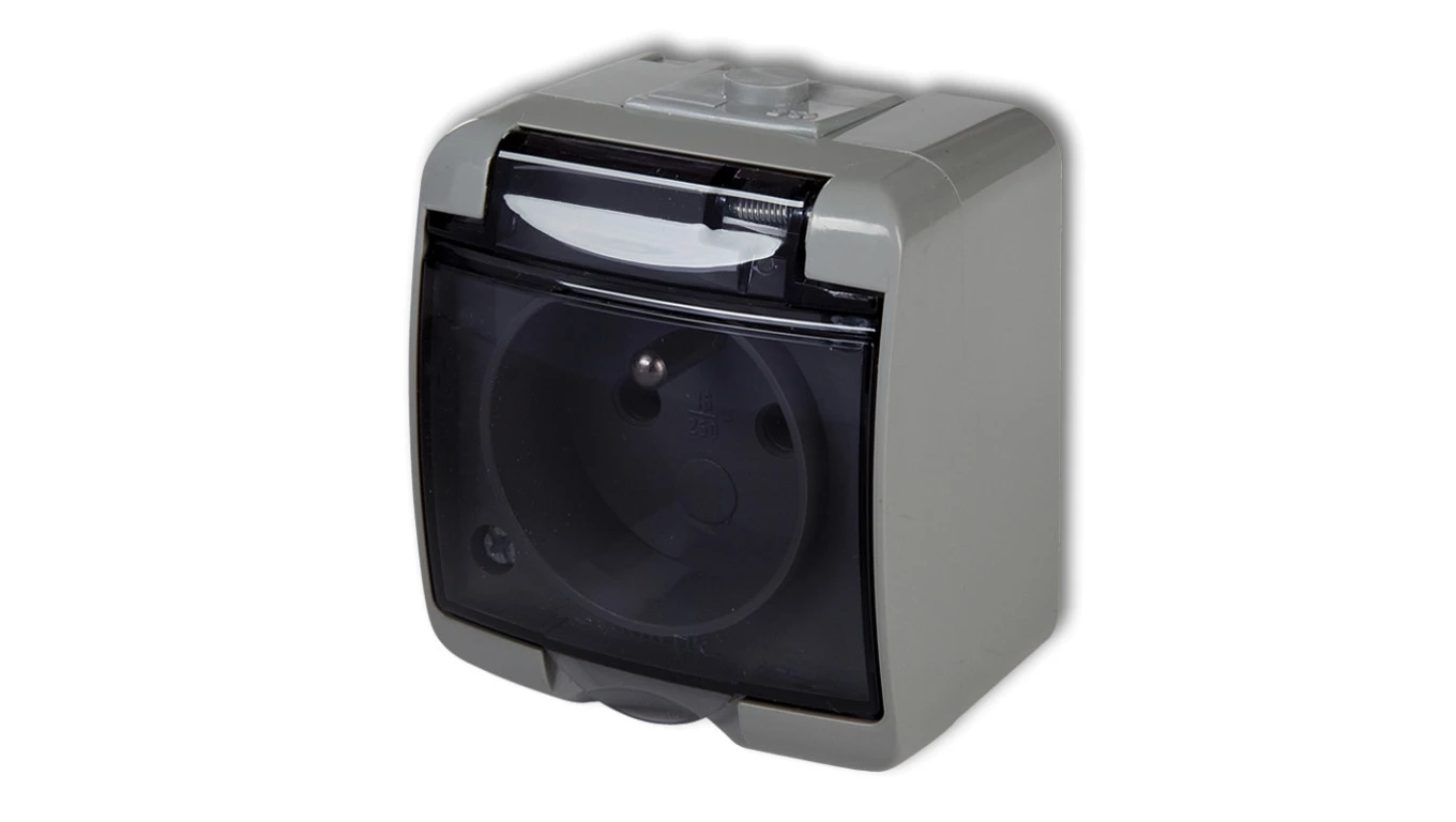 JUNIOR Gniazdo pojedyncze z/u (klapka popielata) popielaty IP54 10GHE-1