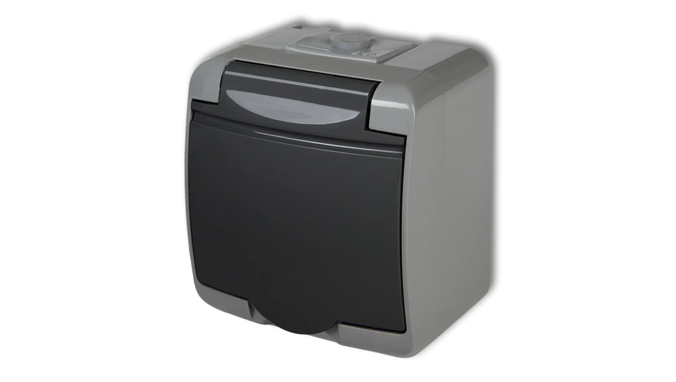 JUNIOR Gniazdo pojedyncze z/u (klapka dymna) popielaty IP54 10GHE-1d