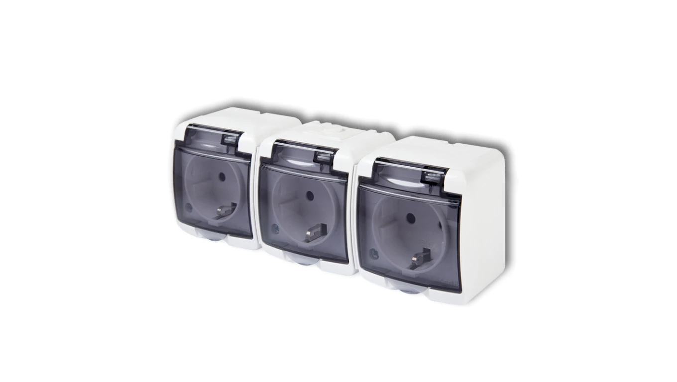 JUNIOR Gniazdo potrójne z/u (klapka dymna) popielaty IP54 10GHE-3d
