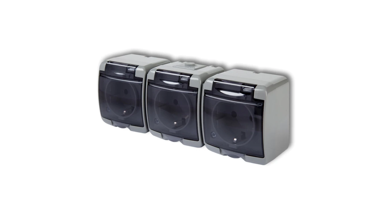 JUNIOR Gniazdo potrójne z/u (klapka dymna) popielaty IP54 10GHE-3d