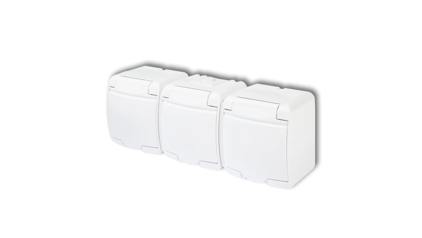 JUNIOR Gniazdo potrójne z/u (klapka dymna) biały IP54 GHE-3d