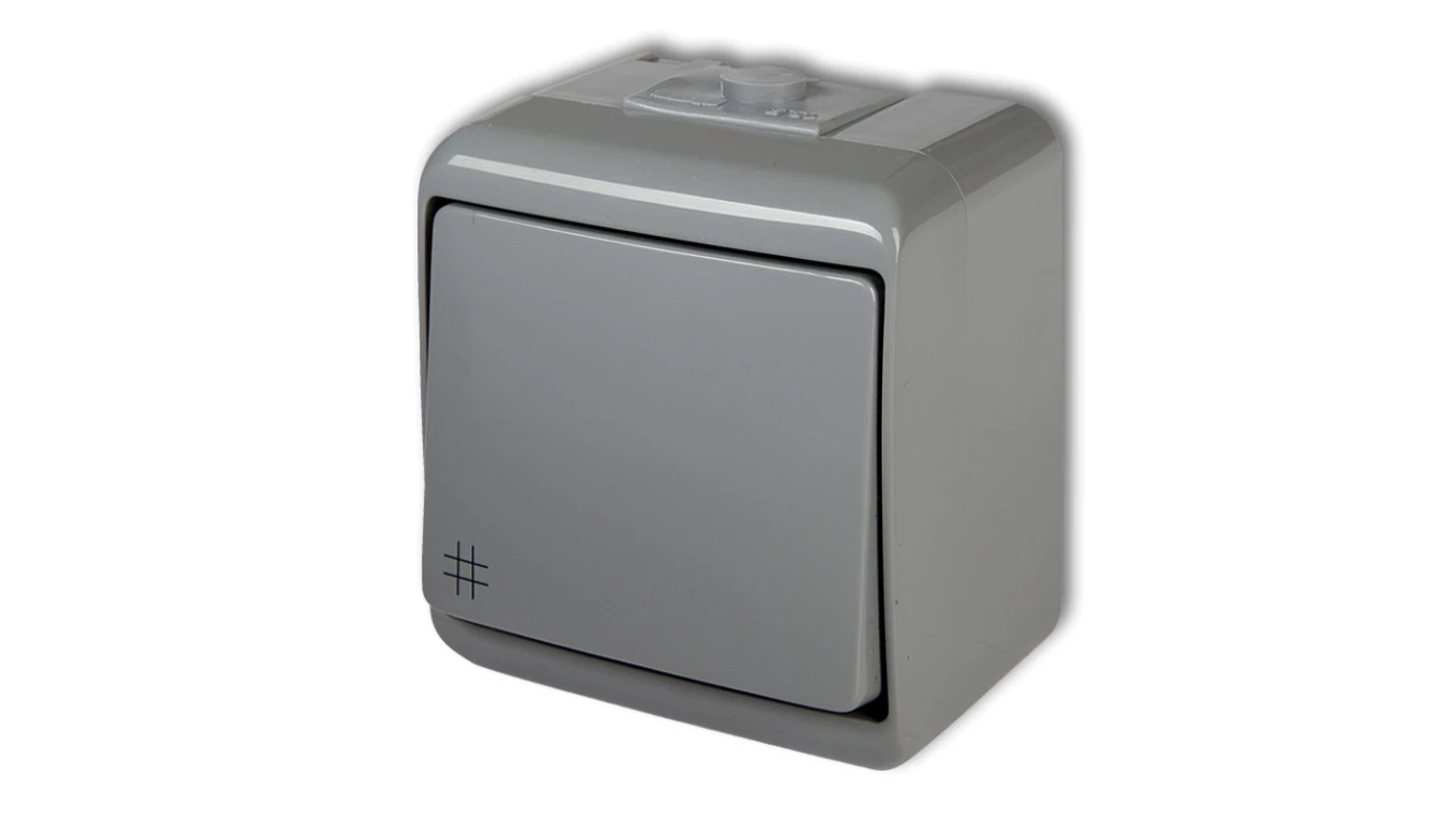 JUNIOR Gniazdo pojedyncze z/u (klapka dymna) popielaty IP54 10GHE-1d