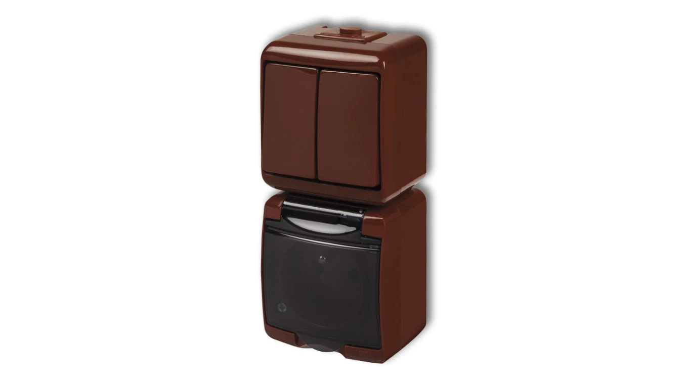 JUNIOR Łącznik świecznikowy + gniazdo hermetyczne (klapka dymna) brązowy 4WGHP-2d