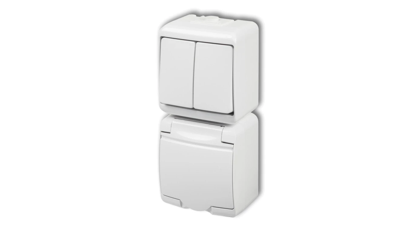 JUNIOR Gniazdo podwójne z/u (klapka dymna) biały IP54 GHE-2d