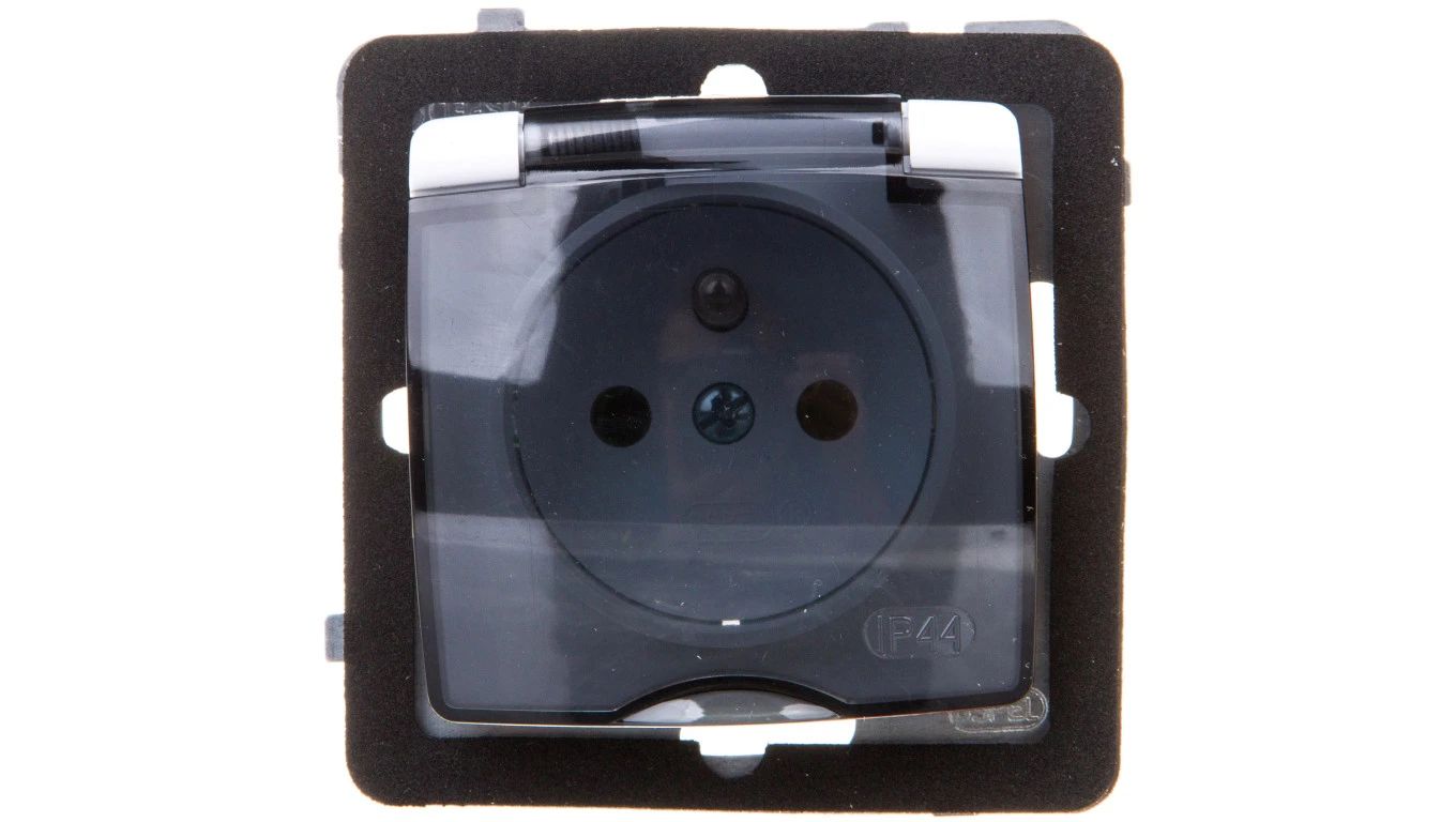 KARO Gniazdo bryzgoszczelne z/u IP44 klapka przezroczysta białe GPH-1SZ/m/00/d