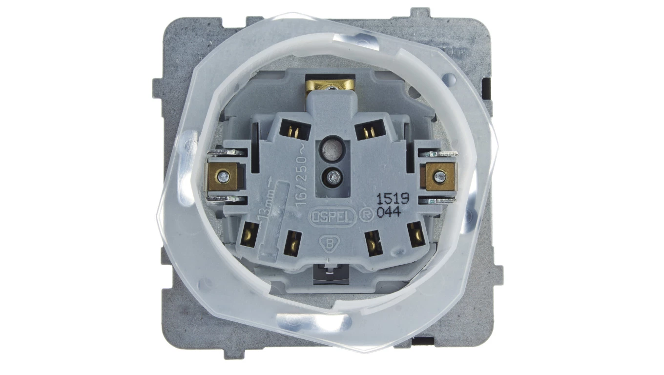 KARO Gniazdo bryzgoszczelne z/u IP44 z przesłonami klapka przezroczysta srebrny perłowy GPH-1SZP/m/43/d