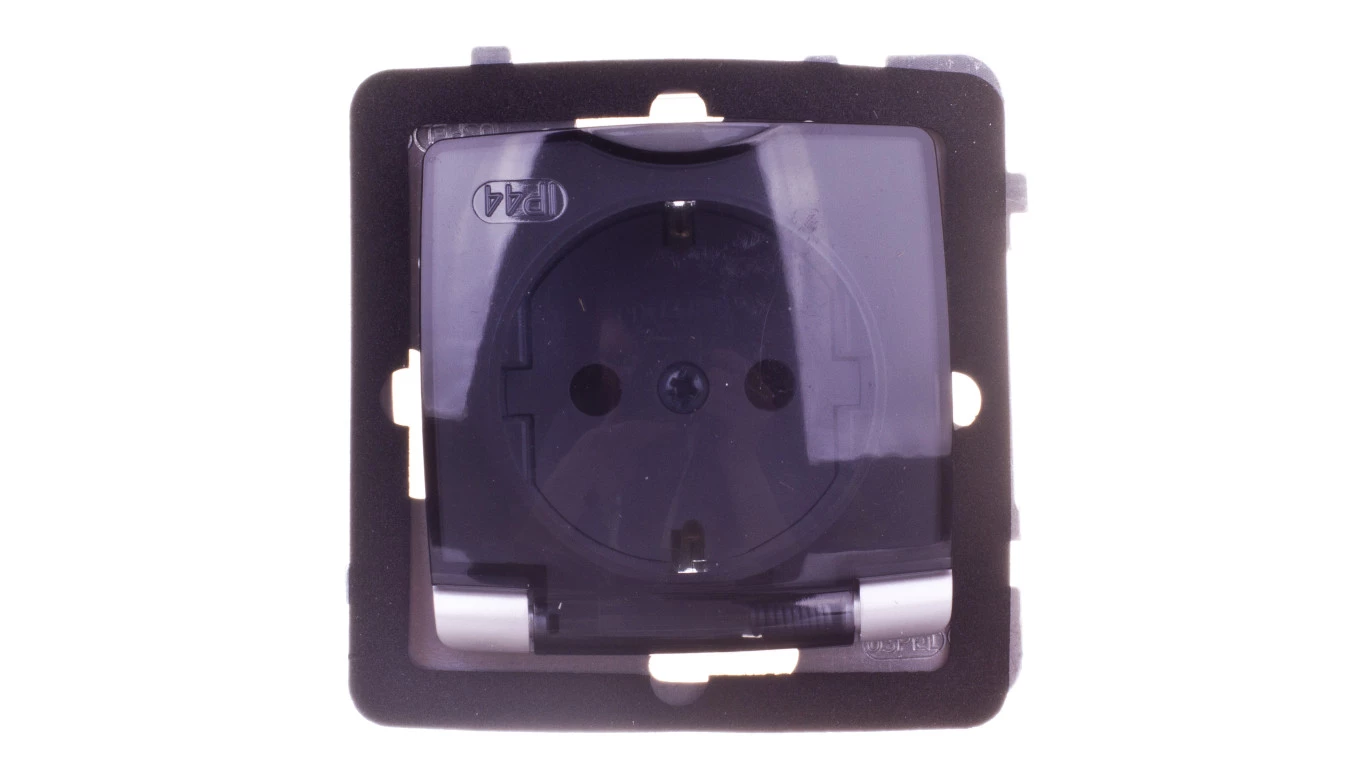 KARO Gniazdo bryzgoszczelne z/u Schuko IP44 klapka przezroczysta srebrny perłowy GPH-1SS/m/43/d