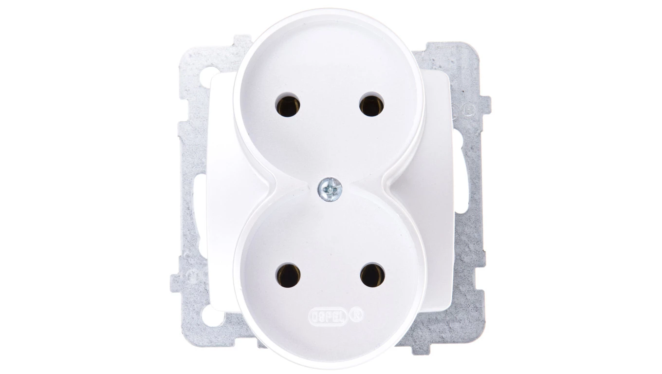 KARO Gniazdo podwójne b/u srebrny perłowy GP-2SR/m/43