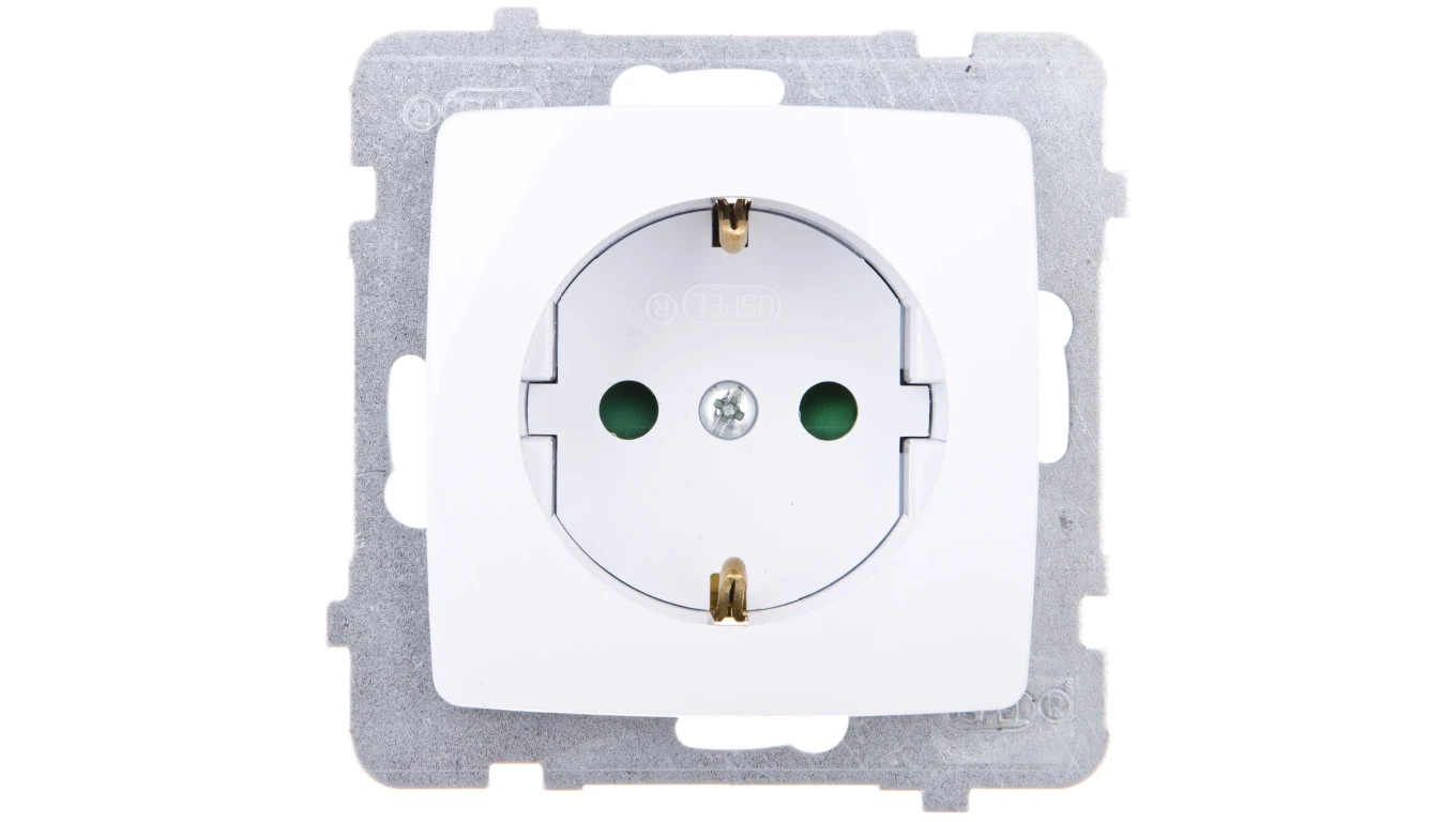 KARO Gniazdo pojedyncze z/u Schuko z przesłonami białe GP-1SSP/m/00