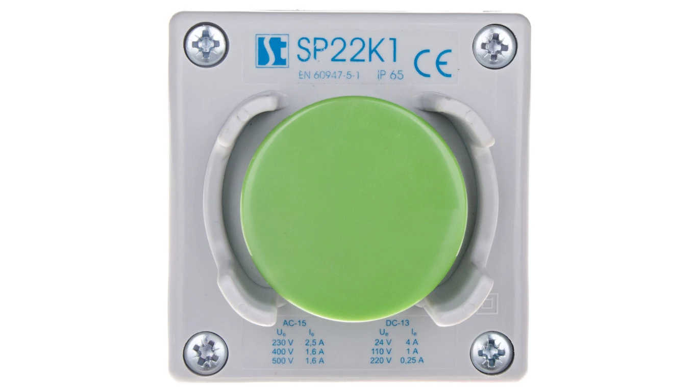 Kaseta sterownicza 1-otworowa przycisk grzybkowy z osłoną zielony 1Z szara IP65 SP22K1\26-1