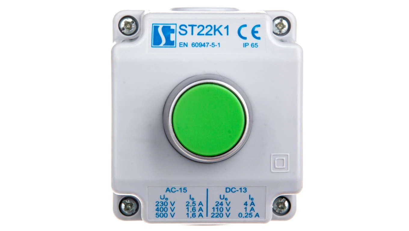 Kaseta sterownicza 1-otworowa zielony 1Z szara IP65 2x dławnica M20 szara ST22K1\01-2