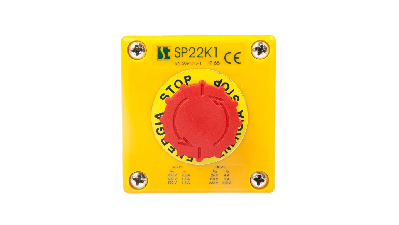 Kaseta z przyciskiem bezpieczeństwa przez obrót 1R IP65 żółta 1x dławnica M20 SP22K1\05-1