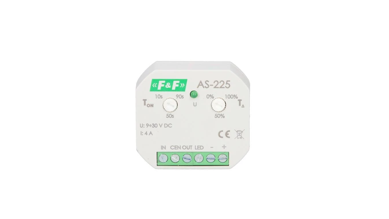 Kaskadowy sterownik oświetlenia schodowego do puszki fi60 4A 10-90s 9-30V DC AS-225