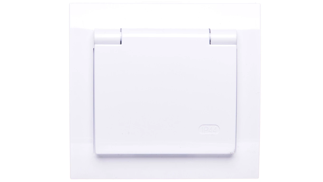 KIER Gniazdo bryzgoszczelne z/u Schuko IP44 z przesłonami klapka biała GPH-1WSP/00/w