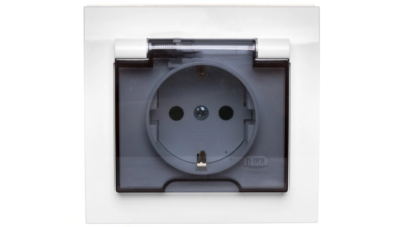 KIER Gniazdo bryzgoszczelne z/u Schuko IP44 z przesłonami klapka przezroczysta białe GPH-1WSP/00/d