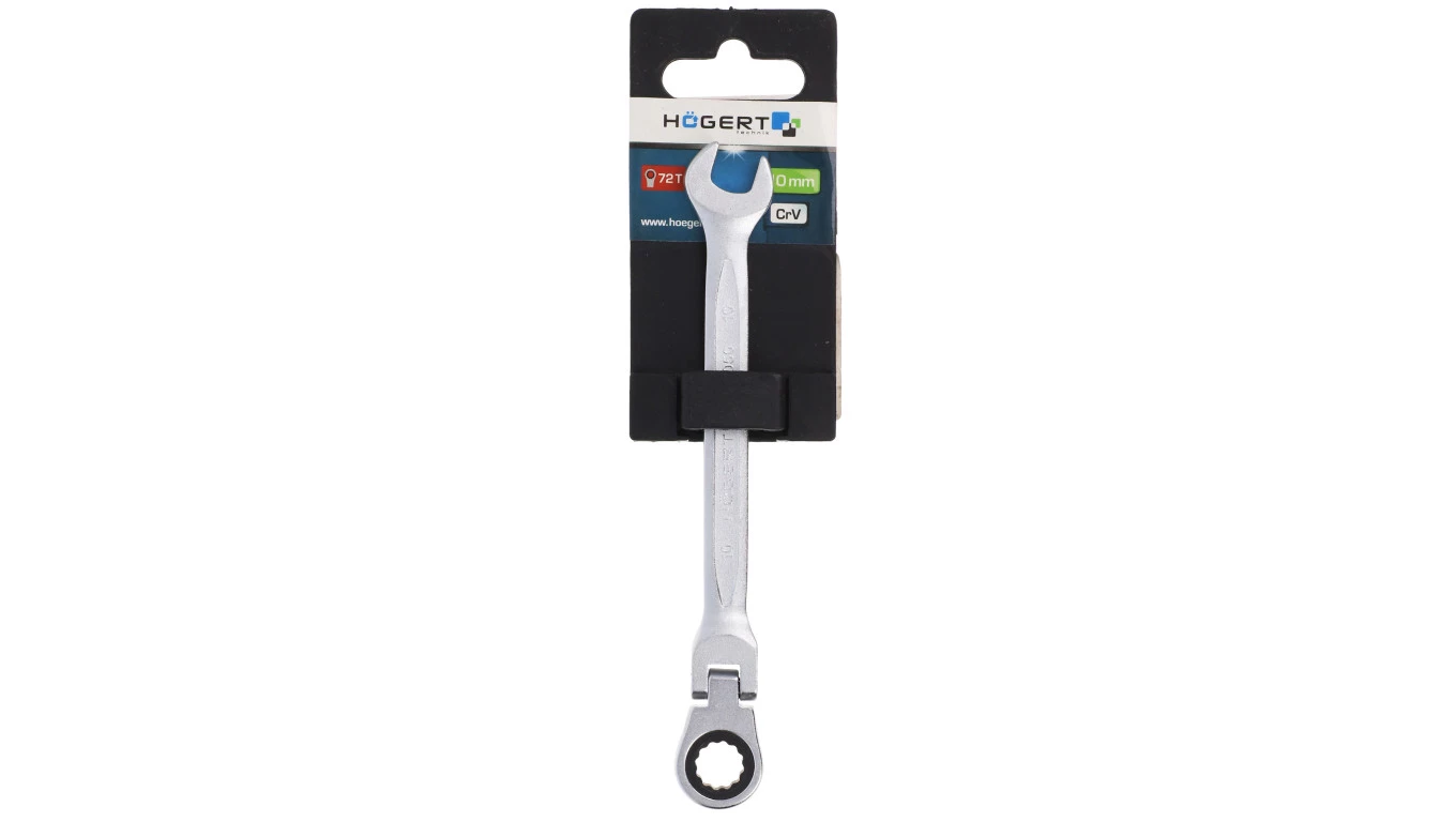 Klucz płasko oczkowy ze stali CrV, z przegubem, 10 mm, 72T