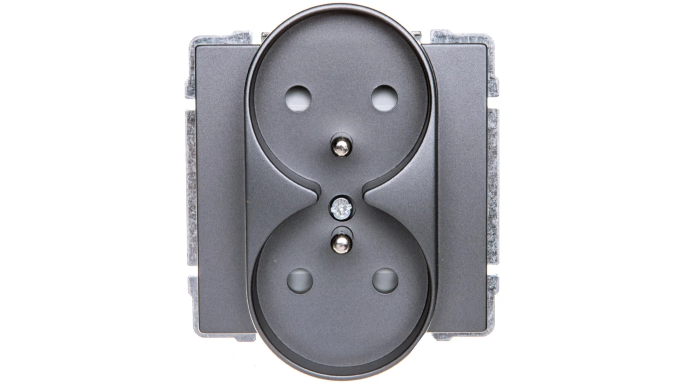 KOS66 Gniazdo podwójne z/u z przesłonami grafit 666047