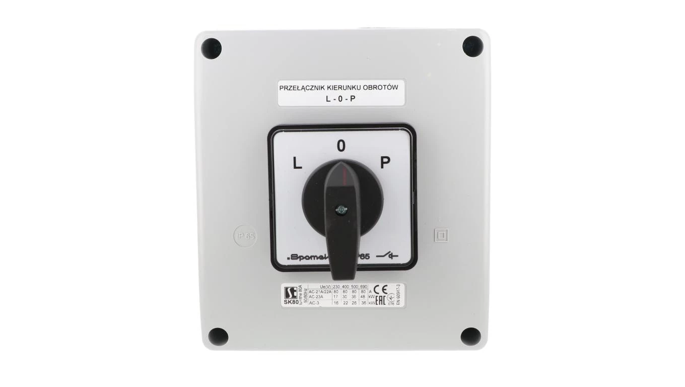 Łącznik krzywkowy 80A przełącznik zmiany kierunku obrotów L-O-P w obudowie OB18 SK80-3.8368\OB18
