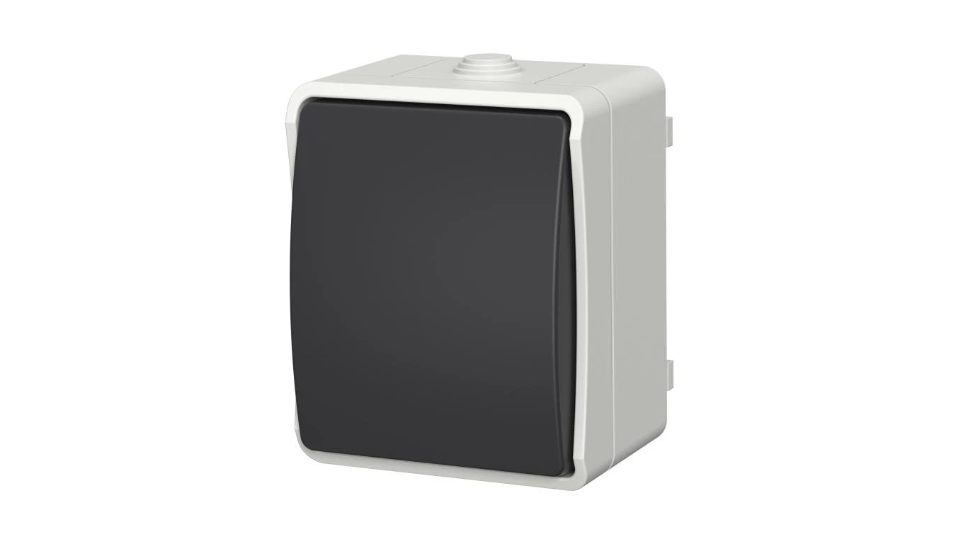 Łącznik pojedynczy zwierny dzwonek natynkowy Aqua Plus IP54 szaro grafitowy 40112