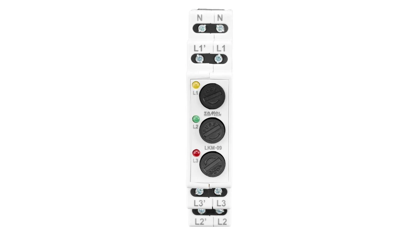Lampka modułowa trójfazowa z zabezpieczeniami (żółta-zielona-czerwona) LKM-09-40