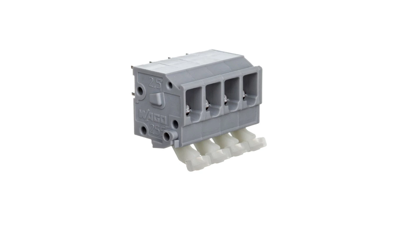 Listwa zaciskowa do płytek drukowanych 4-torowa 2 piny/biegun raster 5-5,08mm z przyciskami szara 255-404 /50szt./