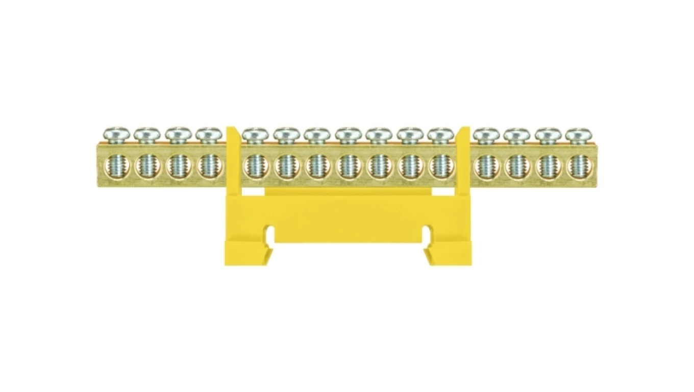 Listwa zaciskowa niska na szynę 15-torowa żółta TH35 E.4054