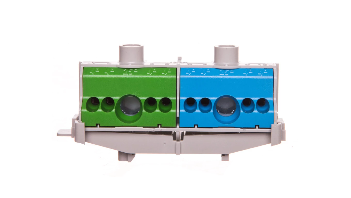 Listwa zaciskowa PE i N na szynę 80 A 2x(1x25mm + 4x4mm2) niebiesko-zielona FC PN 10 26001206